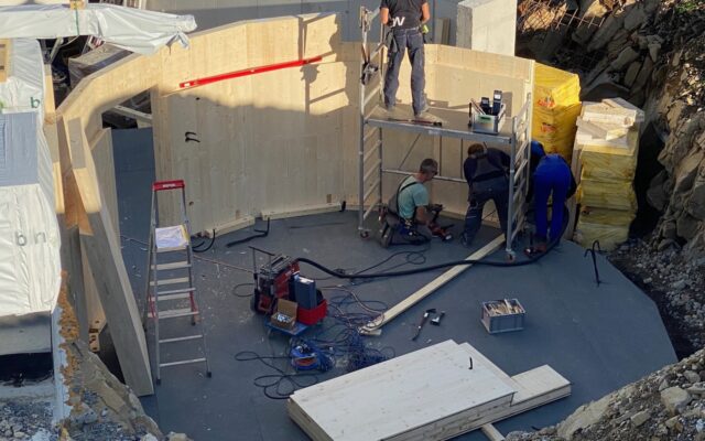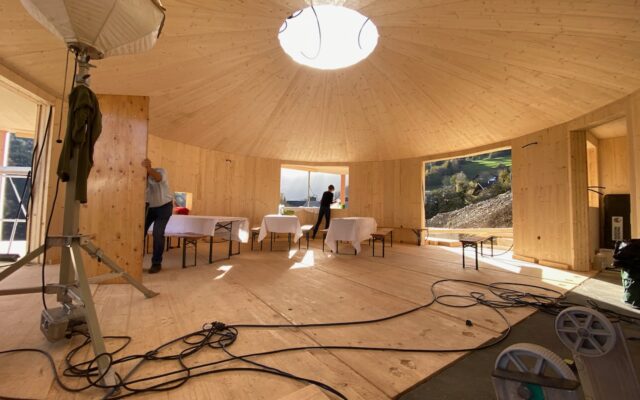 | Besonderheiten: | Musikjurte komplett in den Hang eingebettet, Gebäude in steiler Hanglage. |