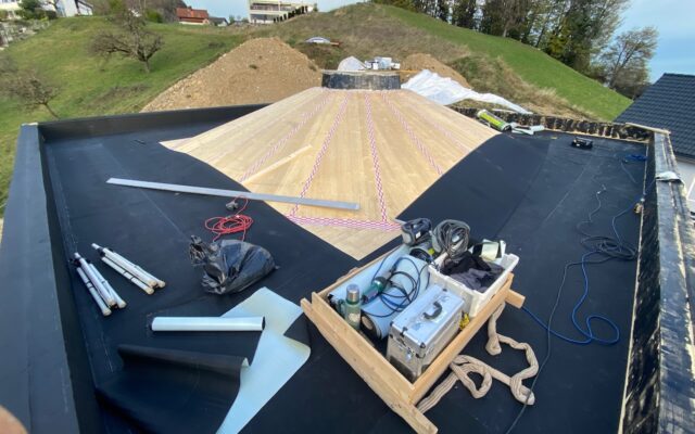 | Dachdeckung: | wurzelfeste EPDM Folie mit extensiver Begrünung |